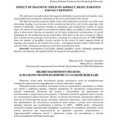Наведено огляд ряду досліджень впливу магнітного поля на попередження утворення асфальтосмолопар...