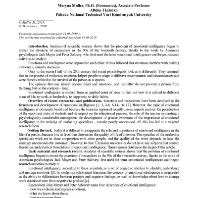 Стаття 2021/04/27Development of Emotional Intelligence as a Component of Successful Marketing Training