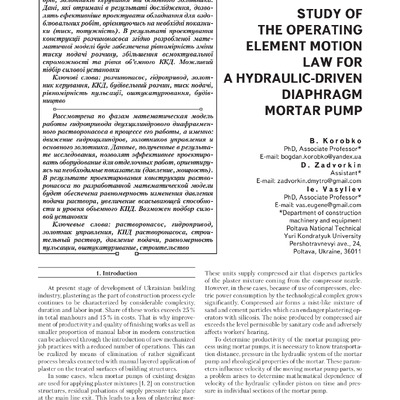 Study of the operating element motion law for a hydraulic-driven diaphragm mortar pump