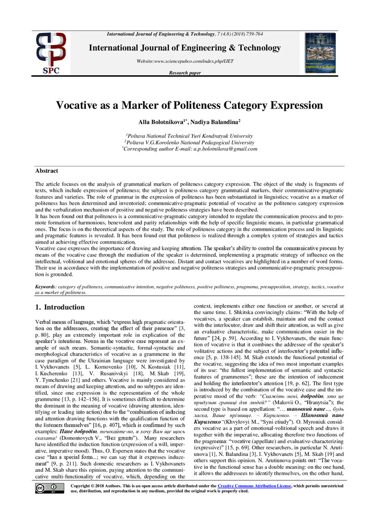 2020/06/01Vocative as a Marker of Politeness Category