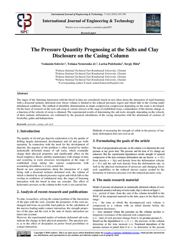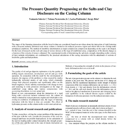 Стаття 2025/09/15The pressure quantity prognosing at the salts and clay disclosure on the casing column