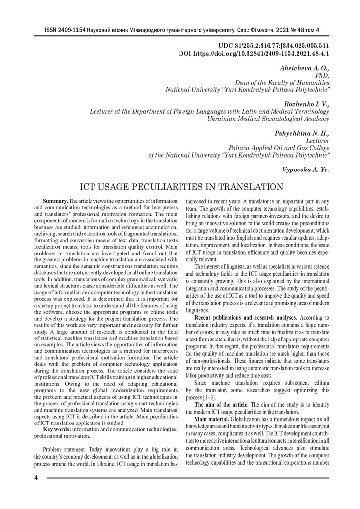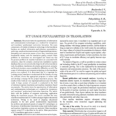Ict usage peculiarities in translation