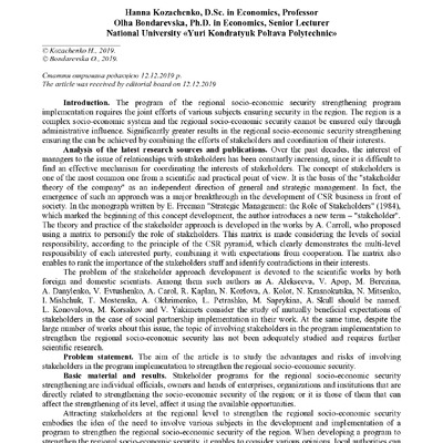 The article defines the essence of the concept of “stakeholders in the program of strengthening t...