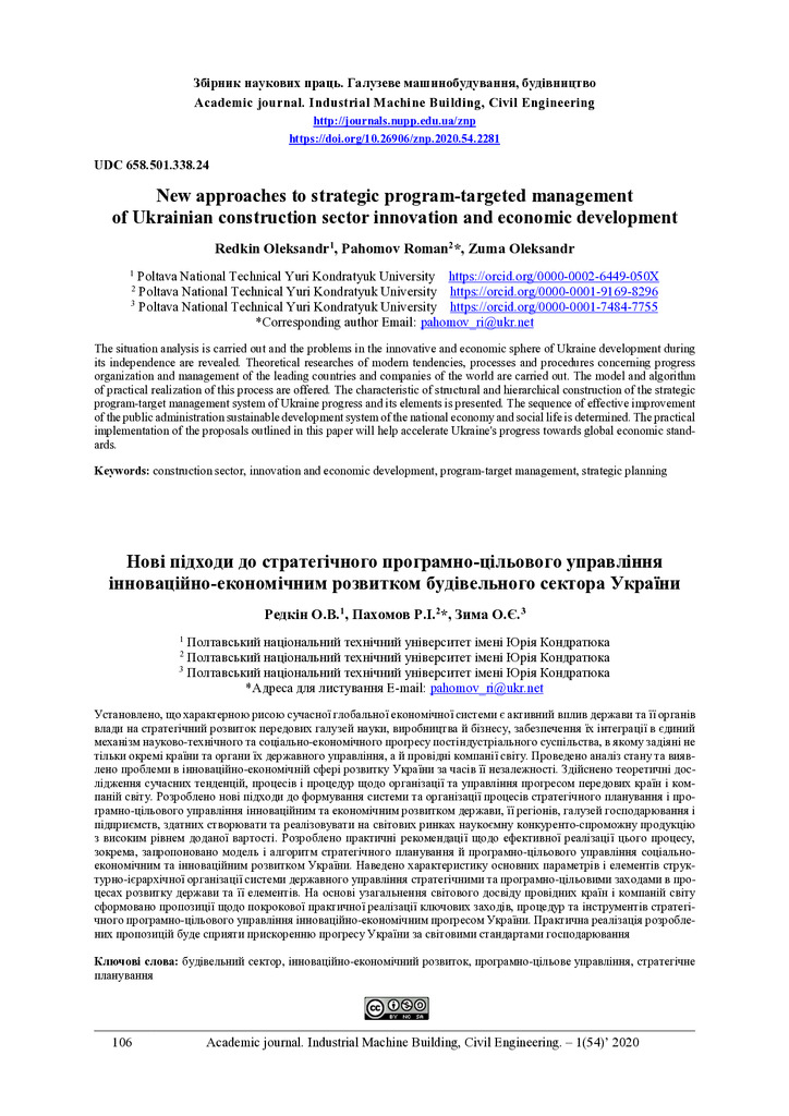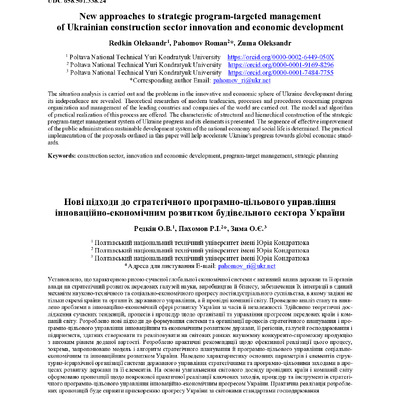 New approaches to strategic program-targeted management of Ukrainian construction sector innovation and economic development