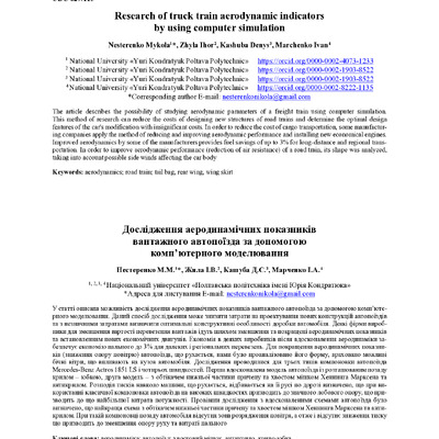 Research of truck train aerodynamic indicators by using computer simulation
