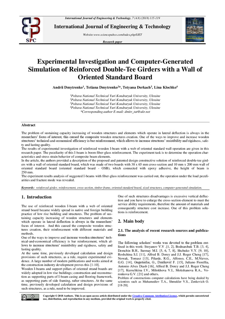 Стаття 2019/03/12Experimental Investigation and Computer-Generated Simulation of Reinforced Double-Tee Girders with a Wall of Oriented Standard Board