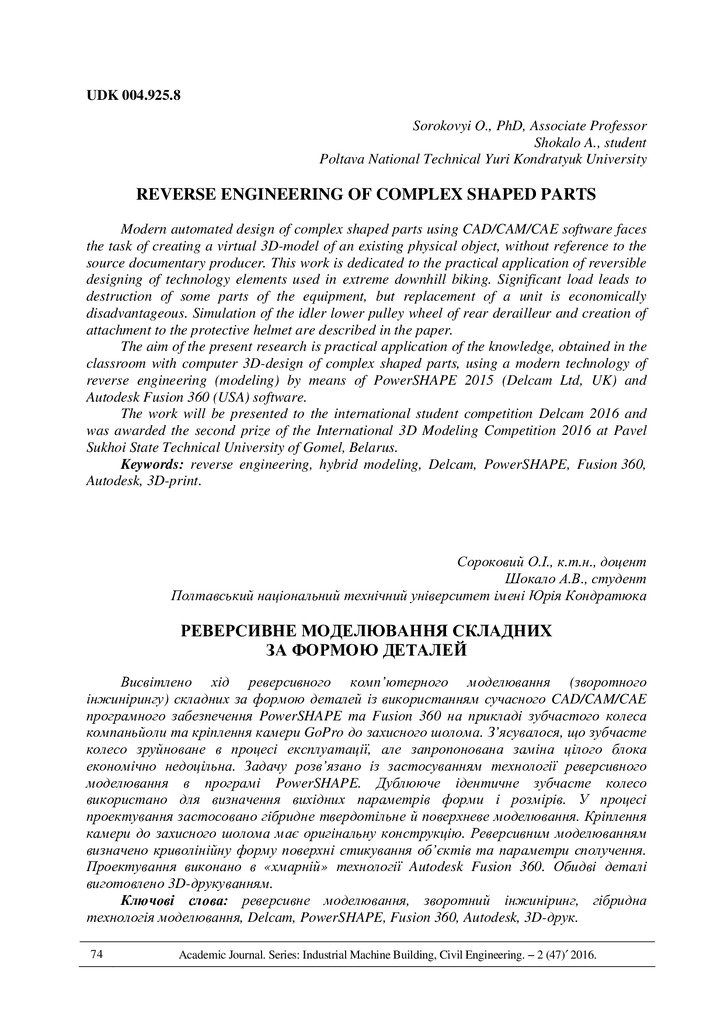 Modern automated design of complex shaped parts using CAD/CAM/CAE software faces the task of creating a virtual 3D-model of an existing physical object, without reference to the source documentary ...