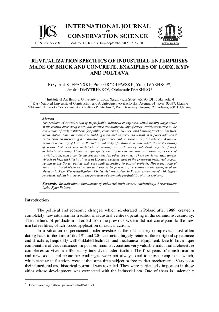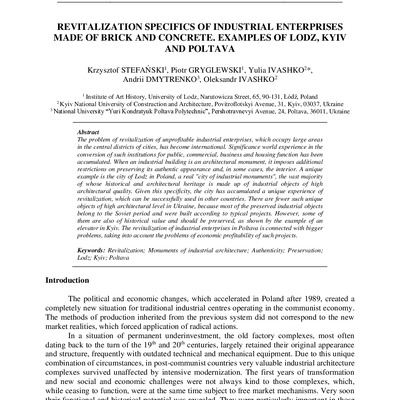 Стаття 2025/03/04Revitalization specifics of industrial enterprises made of brick and concrete. Examples of Lodz, Kyivand Poltava