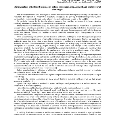 Стаття 2025/12/17Revitalization of historic buildings as hotels: economics, management and architectural challenges