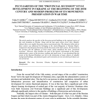 Peculiarities of the “Provincial Secession” Style Development in Ukraine at the Beginning of the 20th Century and Modern Problems of Its Monuments Preservation in War Time