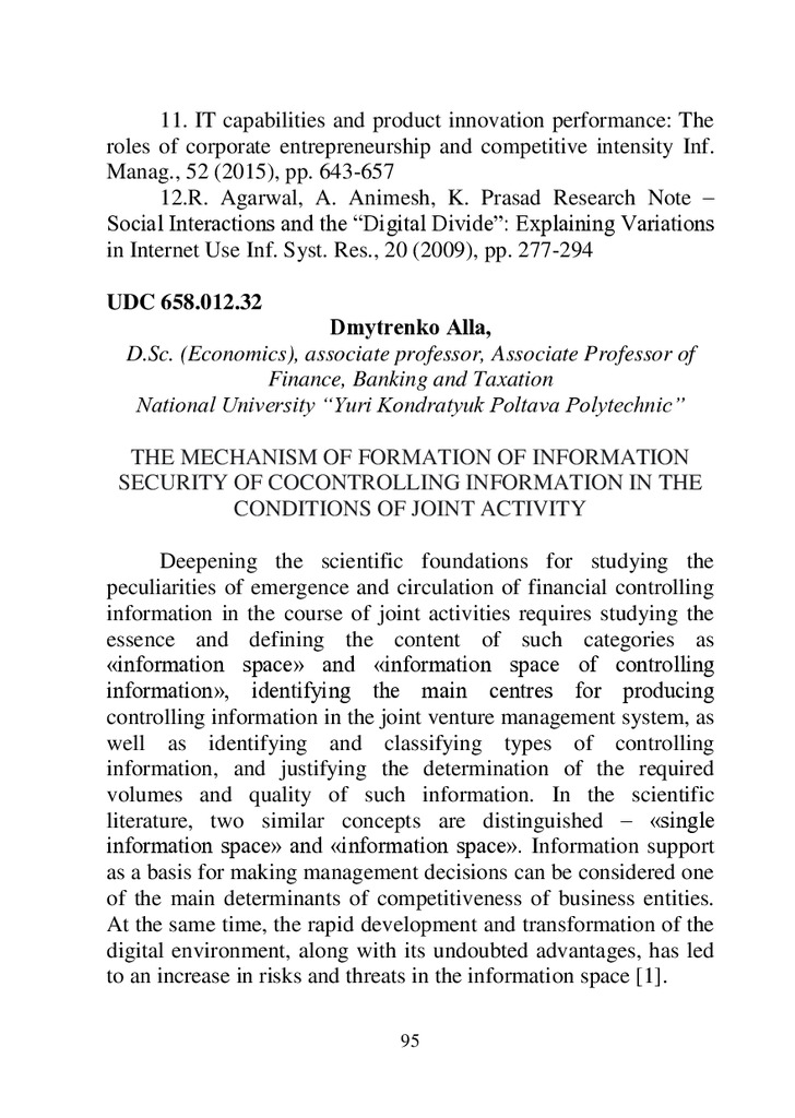 Стаття 2025/12/03The mechanism of formation of information security of cocontrolling information in the conditions of joint activity