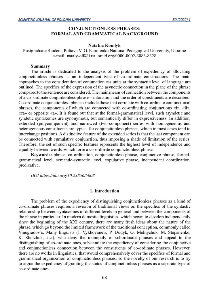 Conjunctionless phrases: formal and grammatical background