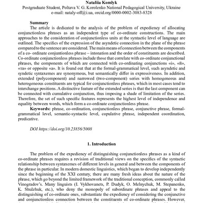 Стаття присвячена аналізу проблеми доцільності виділення безсполучникових словосполучень як самостійного виду сурядних конструкцій. Окреслено підходи до розгляду безсполучникових одиниць на синтакс...
