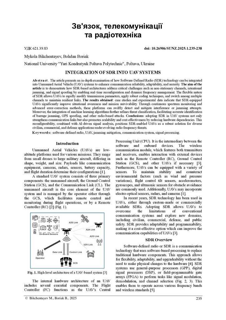 Стаття 2026/02/20Integration of SDR into UAV systems
