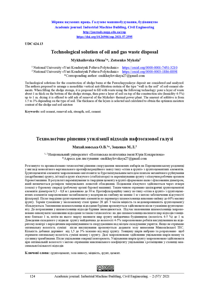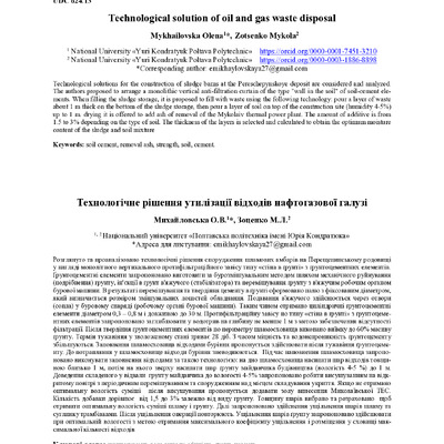 Стаття 2022/12/14Development of a method of utilization of oil and gas industry waste at Pereshchepyno field (Ukraine)