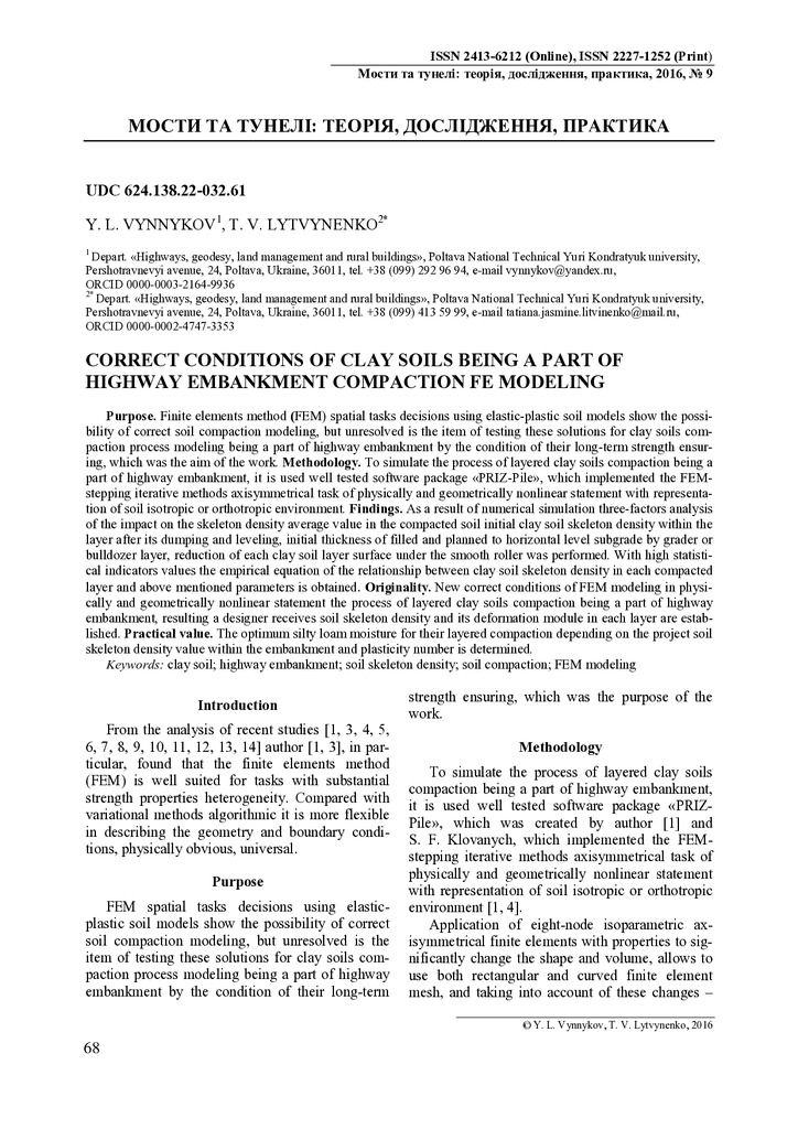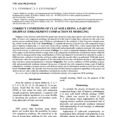 Стаття 2020/07/10Correct conditions of сlay soils being a part of highway embankment compaction fe modeling