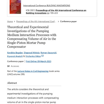 2023/10/18Theoretical and Experimental Investigations of the Pumping Medium Interaction Processes with Compensating Volume of Air in the Single-Piston Mortar Pump Compensator