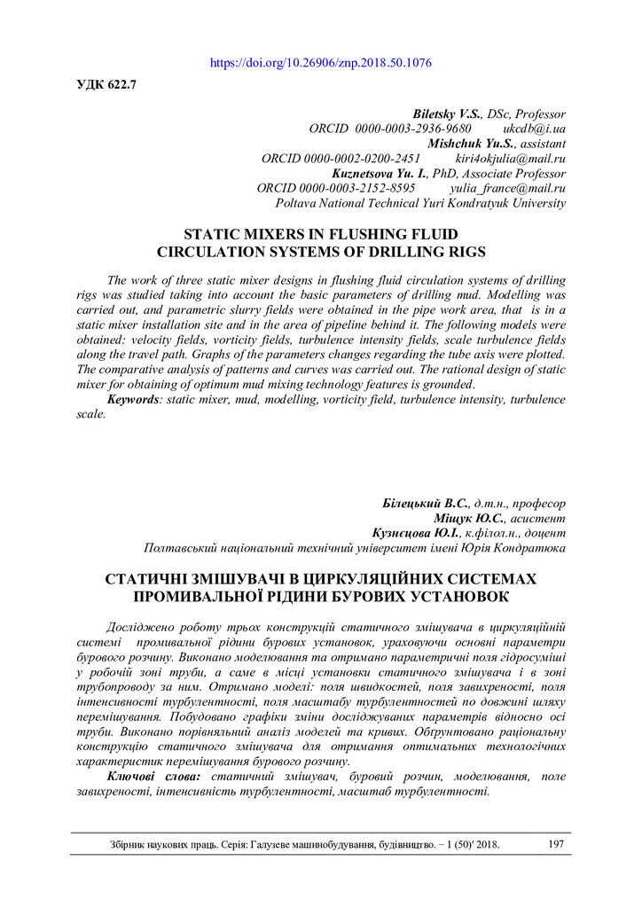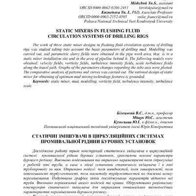 The work of three static mixer designs in flushing fluid circulation systems of drilling rigs wa...