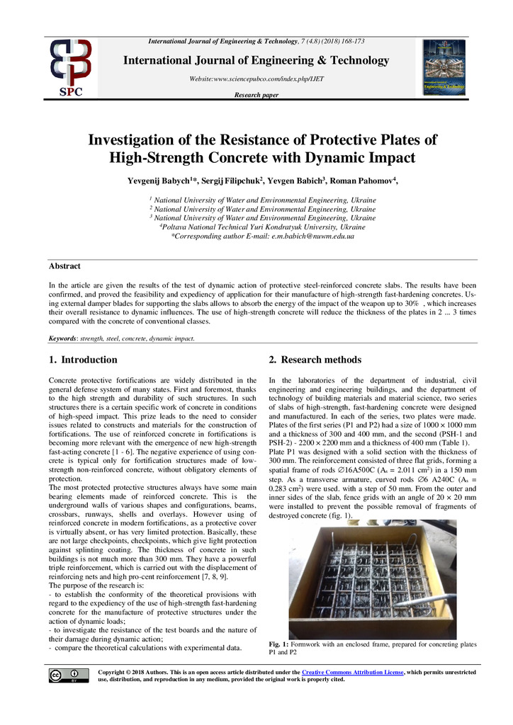 2021/10/11Investigation of the resistance of protective plates of high-strength concrete with dynamic impact