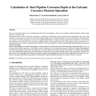 Стаття 2020/07/24Calculation of Steel Pipeline Corrosion Depth at the Galvanic Corrosive Element Operation
