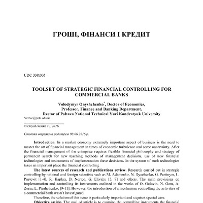 We consider the role of controlling in strategic management of the organization system. We analysed the Balanced Scorecard and controlling tools in the system of financial management of commercial ...