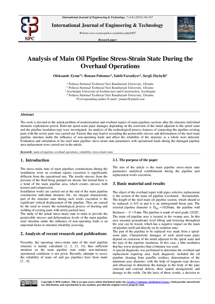 2022/06/05Analysis of main oil pipeline stress-strain state during the overhaul operations