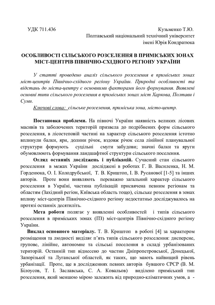 Особливості сільського розселення в приміських зонах міст-центрів Північно-Східного регіону України