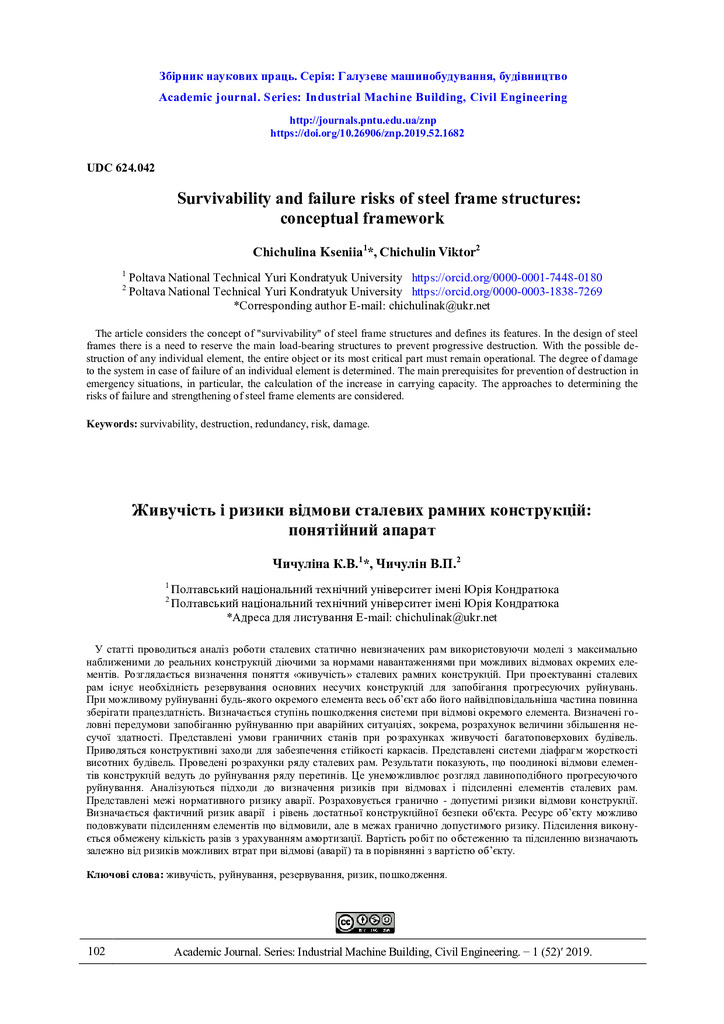 The article considers the concept of "survivability" of steel frame structures and defi...