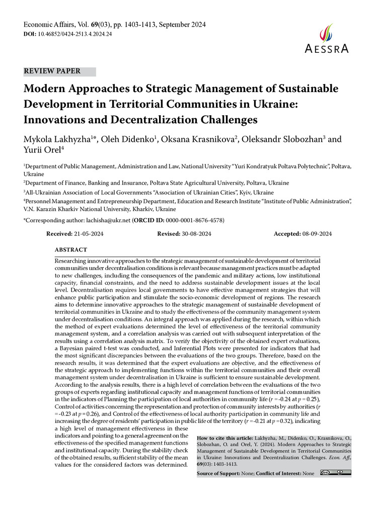 Researching innovative approaches to the strategic management of sustainable development of territorial communities under decentralisation conditions is relevant because management practices must b...