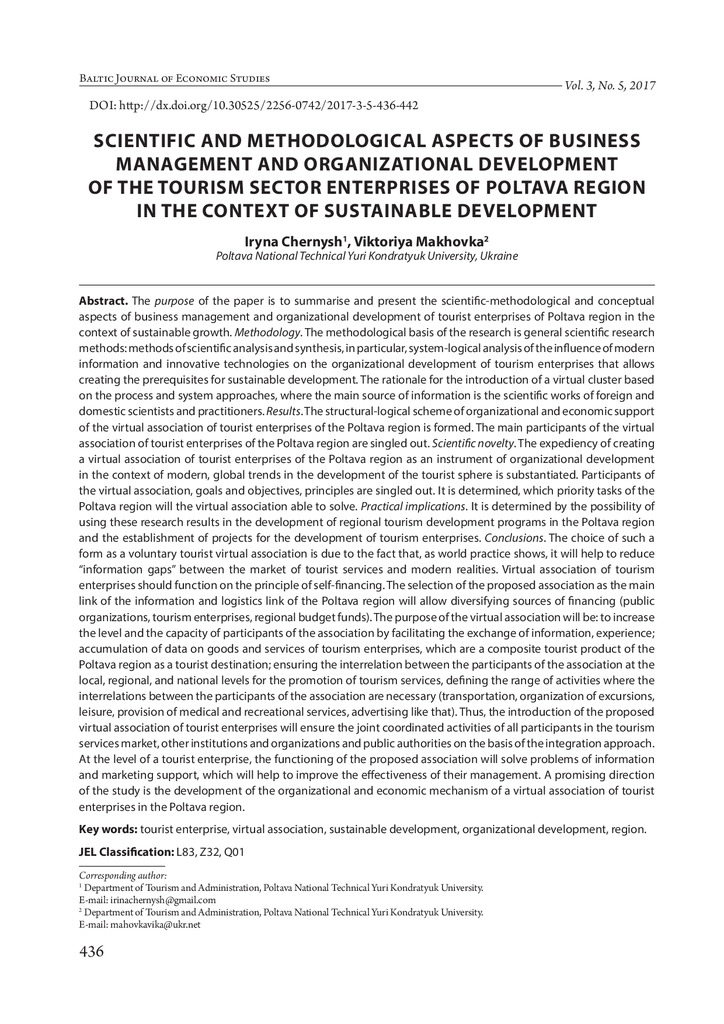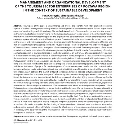 Scientific and methodological aspects of business management and organizational development of the tourism sector enterprises of Poltava region in the context of sustainable development