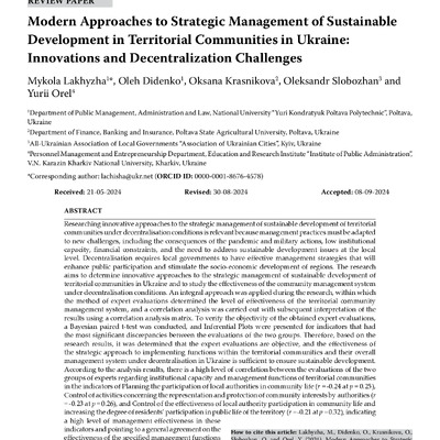 Стаття 2025/10/07Modern approaches to strategic management of sustainable development in territorial communities in Ukraine: innovations and decentralization challenges