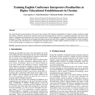Training English Conference Interpreters Peculiarities at Higher Educational Establishments in Ukraine