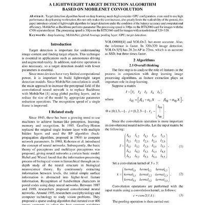 A lightweight target detection algorithm based on Mobilenet Convolution