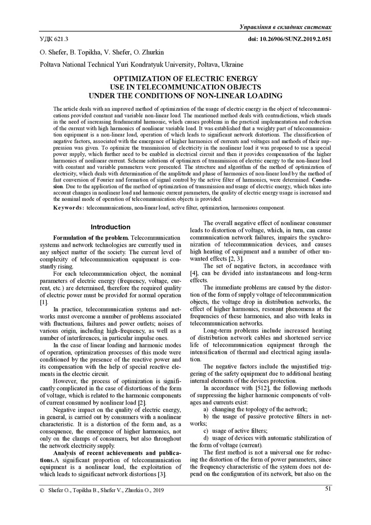 The article deals with an improved method of optimization of the usage of electric energy in the object of telecommuni-cations provided constant and variable non-linear load. The mentioned method d...