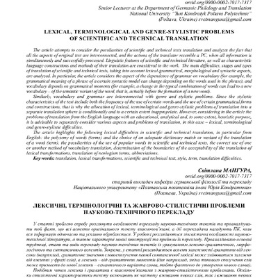 Стаття 2024/02/08Lexical, terminological and genre-stylistic problems of scientific and technical translation