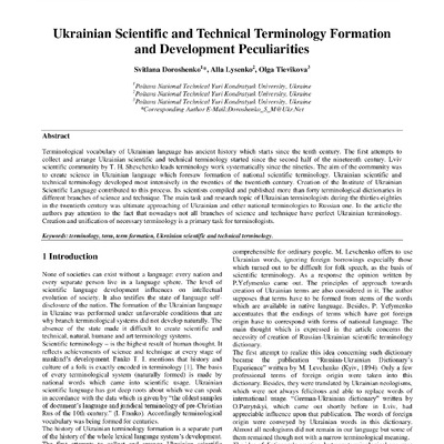Стаття 2020/06/01Ukrainian Scientific and Technical Terminology Formation and Development Peculiarities