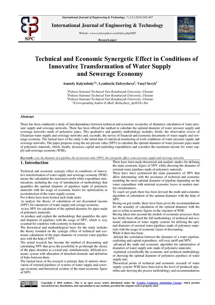 Technical and Economic Synergetic Effect in Conditions of Innovative Transformation of Water Supply and Sewerage Economy
