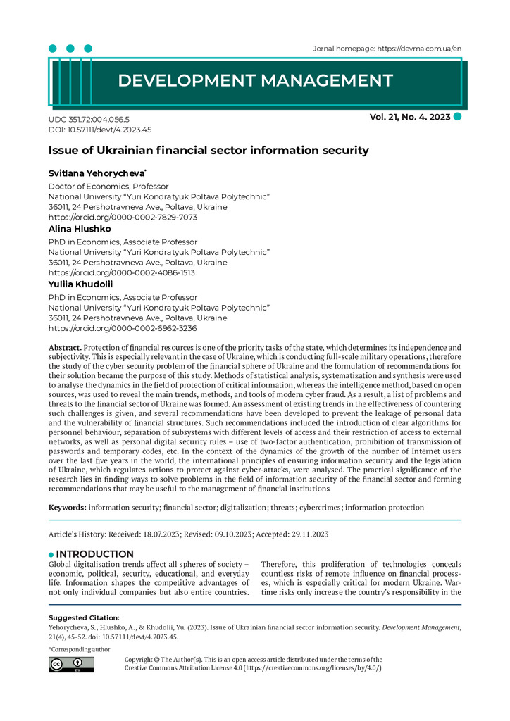 Стаття 2024/04/17Issue of Ukrainian financial sector information security