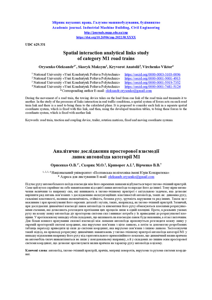 When designing traction-coupling devices and studying the operational properties of road trains, it becomes necessary to determine the size and direction of applying loads that are transmitted from...