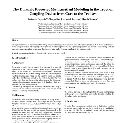 2022/11/15The Dynamic Processes Mathematical Modeling in the Traction Coupling Device From Cars to the Trailers