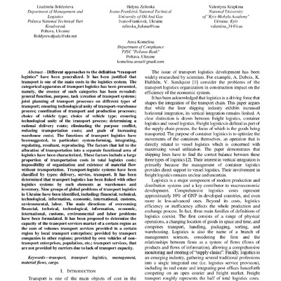 The article presents transport logistics as a cornerstone of the overall state economic policy, s...