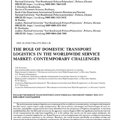 The article presents transport logistics as a cornerstone of the overall state economic policy, serving not only domestic but also transit, export-Pimport cargo transportation. The characteristics,...