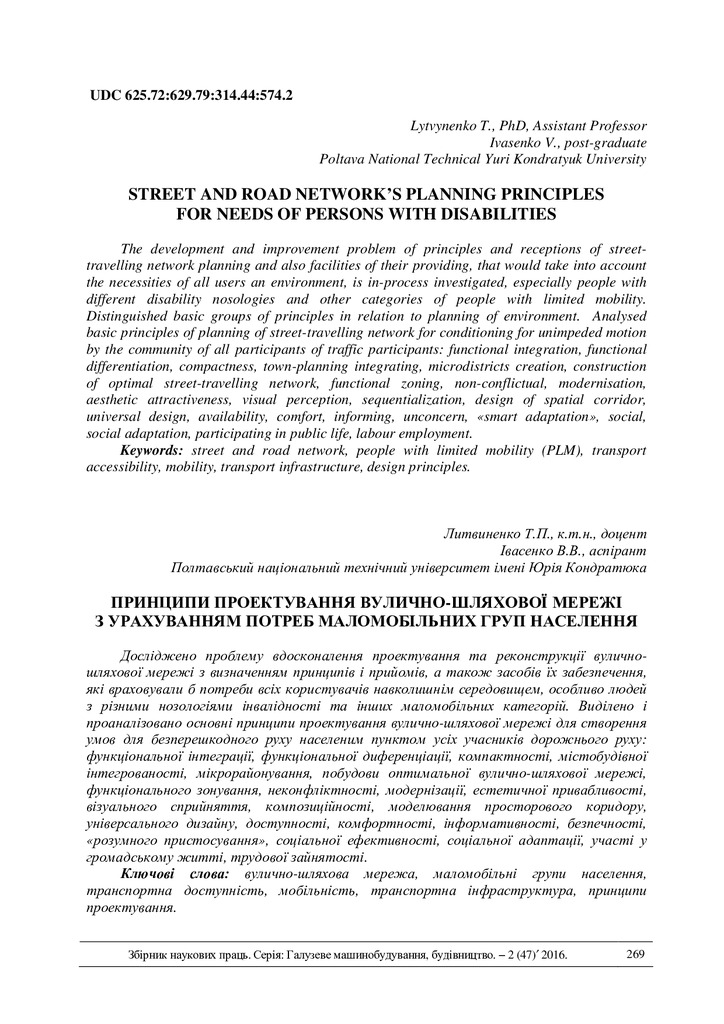 The problem of development and improvement of principles and receptions of planning of street-travelling network and also facilities of their providing, that would take into account the necessities...