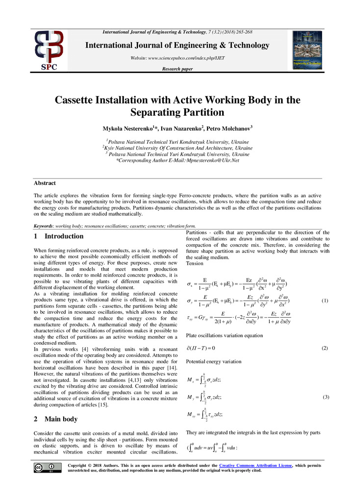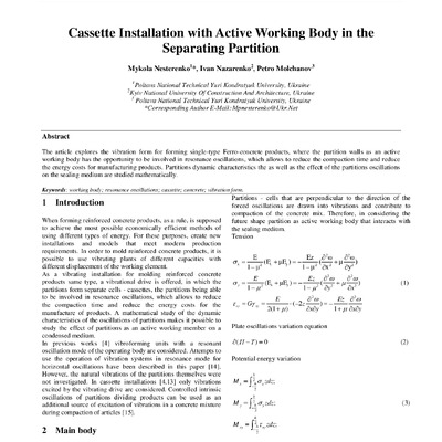 The article explores the vibration form for forming single-type Ferro-concrete products, where the partition walls as an active working body has the opportunity to be involved in resonance oscillat...