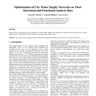 Based on the research results on the operation of urban water supply and distribution systems, the most rational ways of their improvement are identified in order to improve water supply and energy...