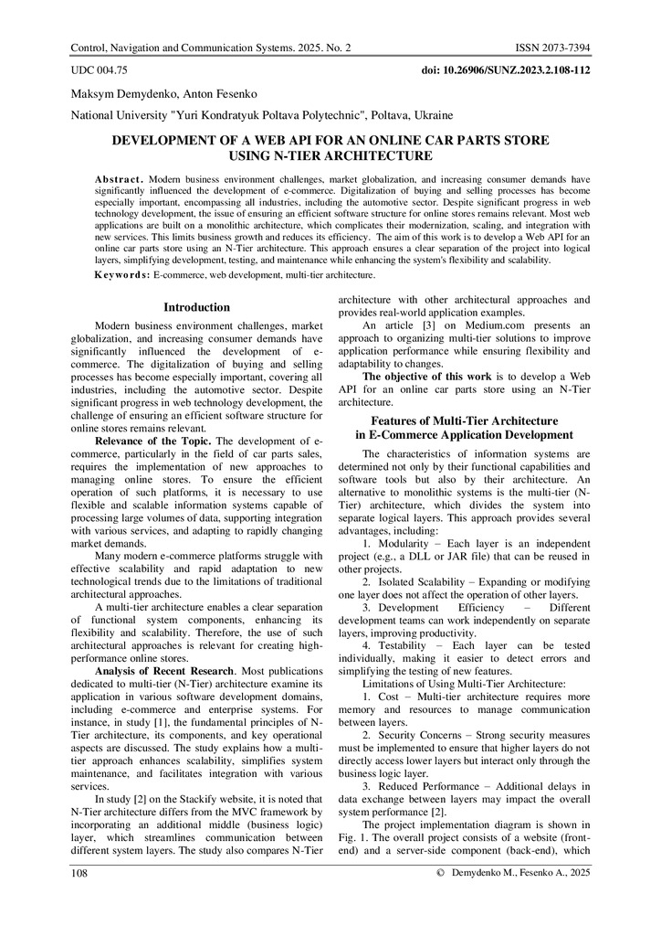 Development of a WEB API for an online car parts storeusing N-Tier architecture