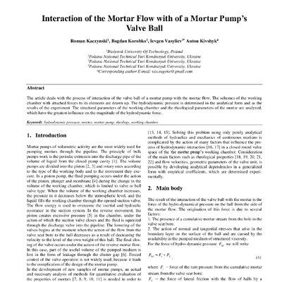 Interaction of the mortar flow with of a mortar pump’s valve ball