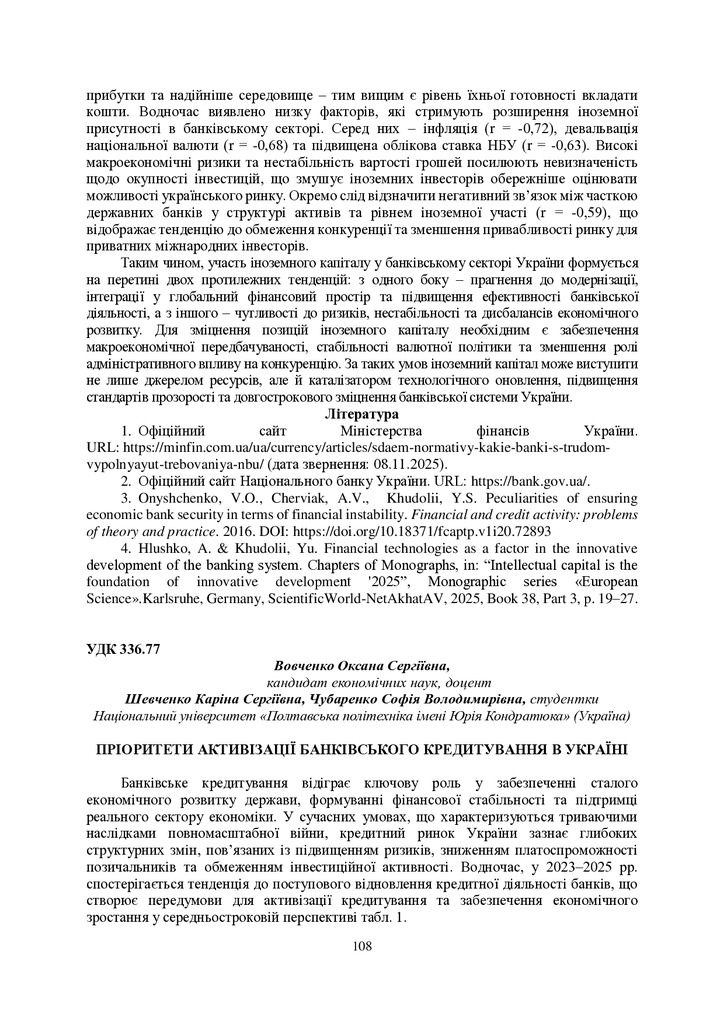 Стаття 2025/12/26Пріоритети активізації барнківського кредитування в Україні
