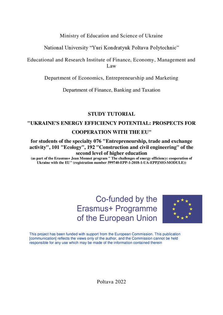 Study tutorial "Ukraine's energy efficiency potential: prospects for cooperation with the EU"