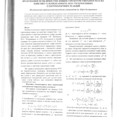Врахування особливостей зонної структури твердого тіла на кінетику елементарного акту гетерогенних електрохімічних реакцій